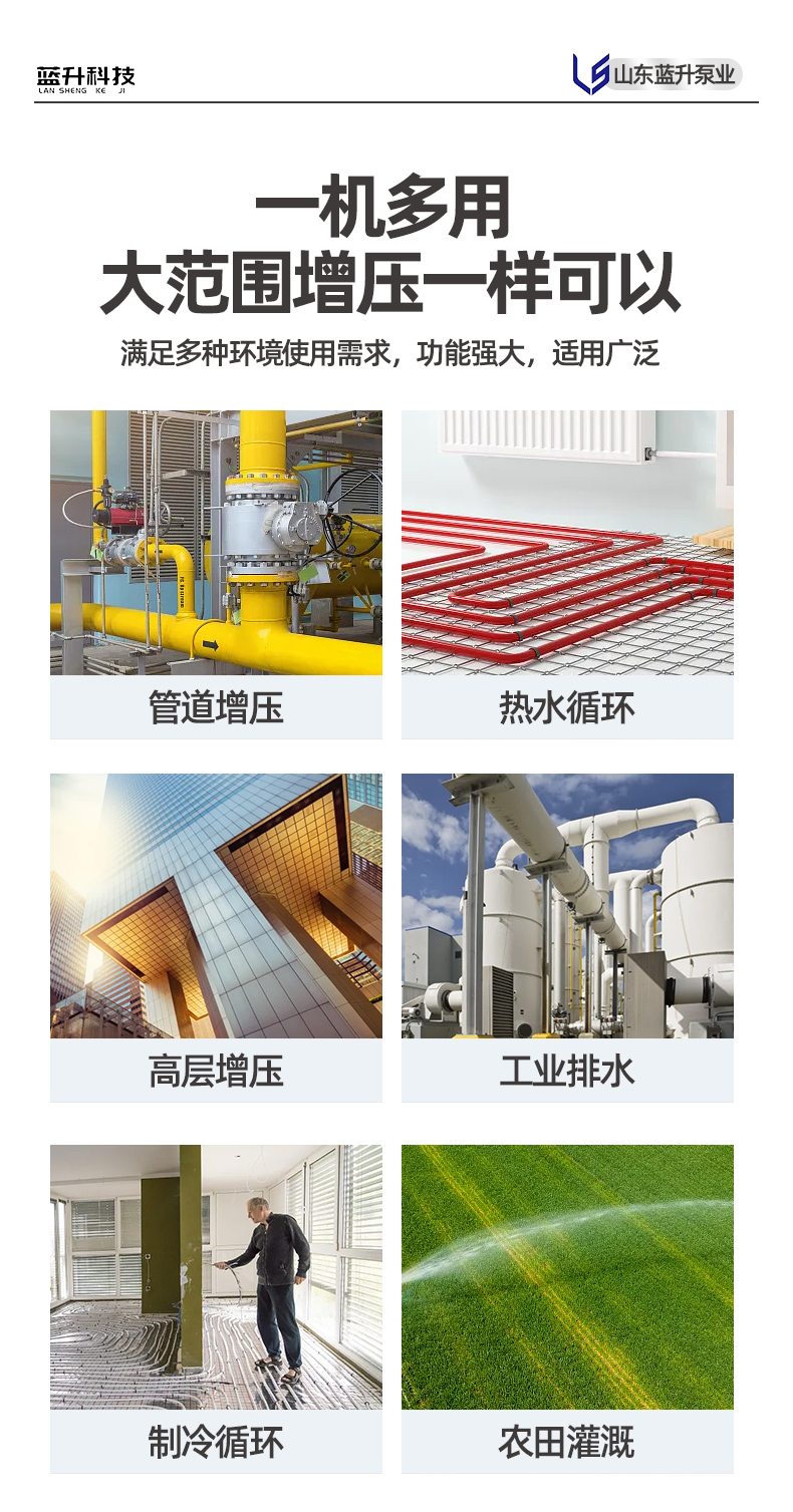 高層建筑供水:市政管網(wǎng)壓力通常無(wú)法滿足高層建筑需求,管道泵通過增壓將水輸送至高層用戶,確保末端水壓穩(wěn)定。