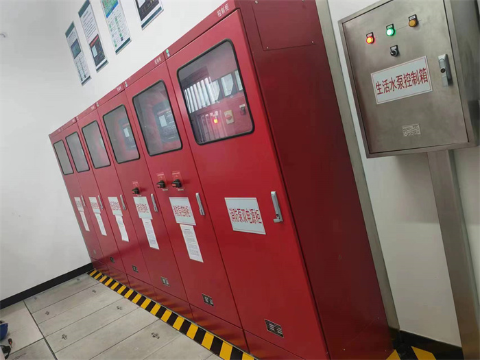 2)消防泵控制柜實現(xiàn)如下功能: 2臺消防泵互為備用;當出水管壓力降低至0.380MPa時,啟動1臺消防泵,同時將消防泵緊急運行信號