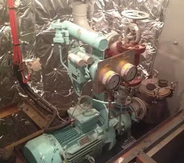 水泵就是利用離心力工作的??纯聪聢D2,當(dāng)泵艙內(nèi)充滿水時,葉輪在電機(jī)帶動下,飛快旋轉(zhuǎn),水因?yàn)殡x心力,從中心向四周飛散,此時葉輪中心形成真空,外界的液體就會因?yàn)閴翰睿飨虻蛪旱娜~輪中,這樣就會源源不斷地將外界液體抽走。出口處不斷積累的液體形成高壓,最終可以從艙底排出至高處的舷旁閥。