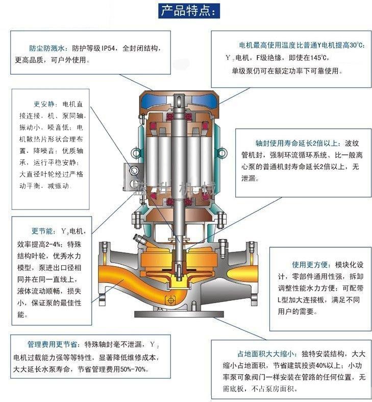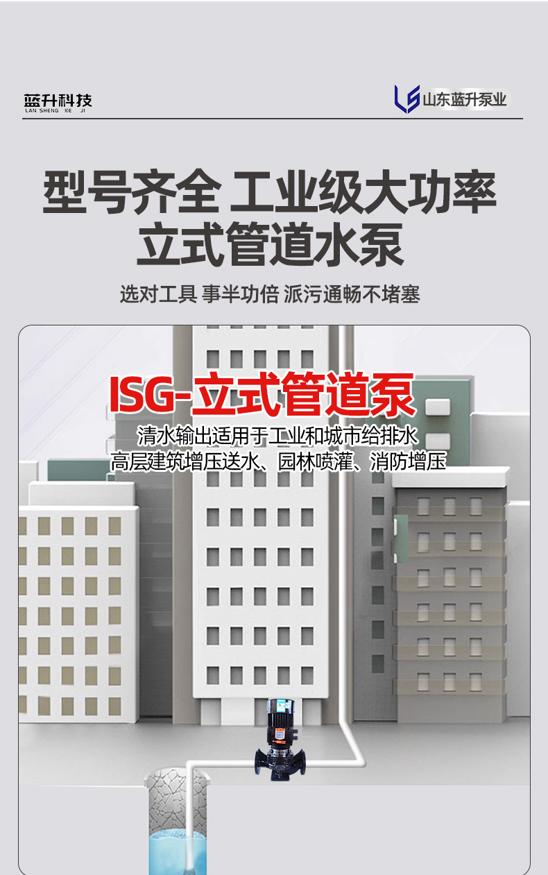 1、ISG型立式管道泵,供輸送清水及物理化學(xué)性質(zhì)類似于清水的其他液體之用,適用于工業(yè)和城市給排水、消防增壓、暖通制冷循環(huán)、園林噴灌、遠(yuǎn)距離輸送、高層建筑增壓送水、浴室等冷暖水循環(huán)增壓及設(shè)備配套,使用溫度T<80℃。