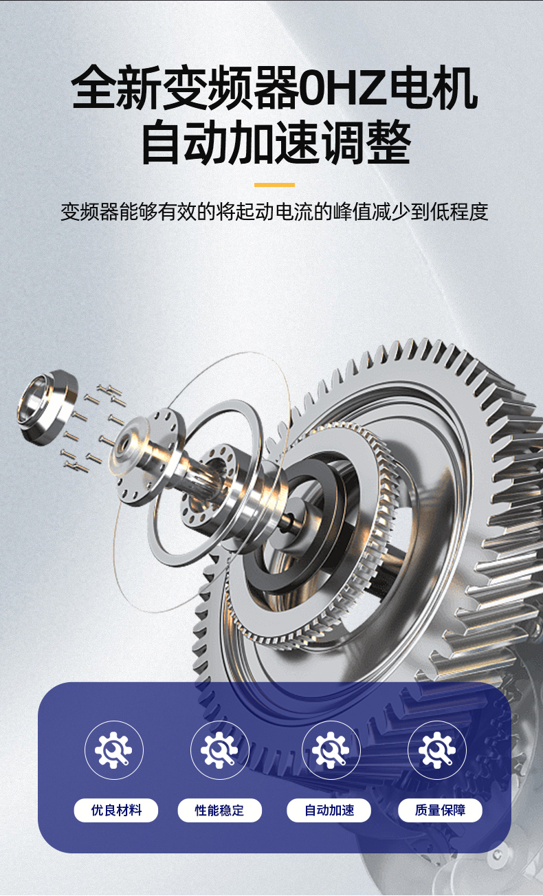 變頻器從0HZ起動(dòng)電機(jī),它的起動(dòng)加速時(shí)間可以調(diào)整,從而減少起動(dòng)時(shí)對(duì)電機(jī)的電器部件和機(jī)械部件所造成的沖擊,增強(qiáng)系統(tǒng)的可靠性,使電機(jī)的使用壽命延長(zhǎng)。此外,變頻控制能夠減少機(jī)組起動(dòng)時(shí)電流波動(dòng),這一波動(dòng)電流會(huì)影響電網(wǎng)和其它設(shè)備的用電,變頻器能夠有效的將起動(dòng)電流的峰值減少到最低程度。
