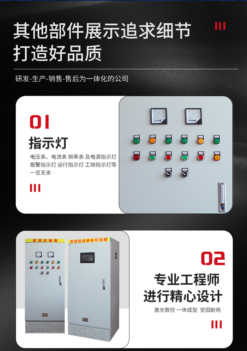 變頻控制柜內(nèi)在質(zhì)量?jī)?yōu)良,外形美觀耐用,安裝操作方便,是各類水泵安全可靠的伴侶。