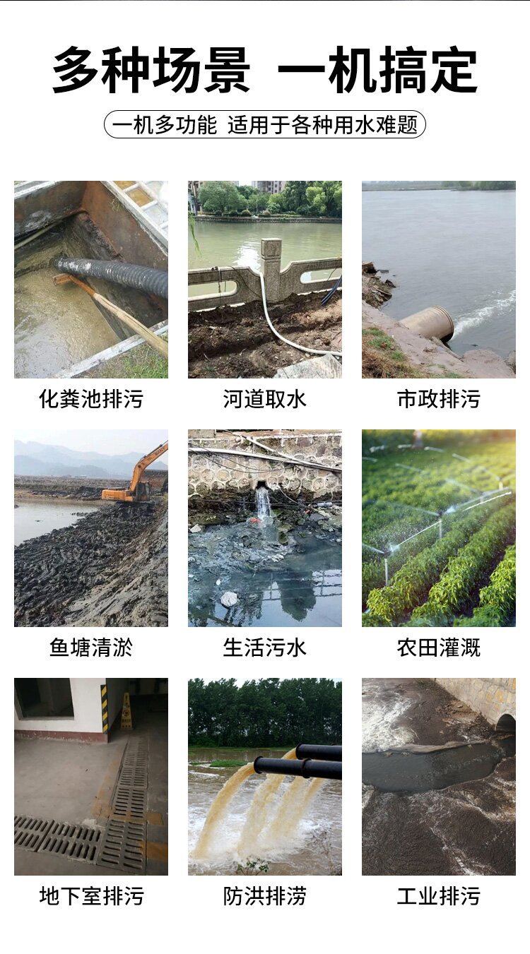應(yīng)急排水: 用于洪水、暴雨等自然災(zāi)害后的排水作業(yè)。